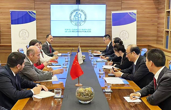 Mr. Hou highly appreciated Mr. Bermúdez’s effective work during his term as the Chairman of the United Nations Board of Auditors, and introduced the latest development of the government audit in China. Mr. Bermúdez thanked Mr. Hou for visiting the Office of the Comptroller General of Chile, and looked forward to increasing cooperation between the two SAIs.