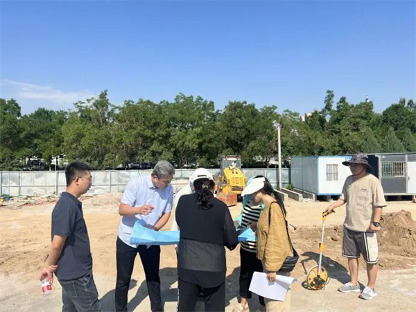 審計人員對照圖紙實地查看污水管道施工情況