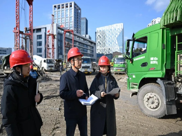 徐國增(中)和同事實地踏勘建設工程土方外運管理情況