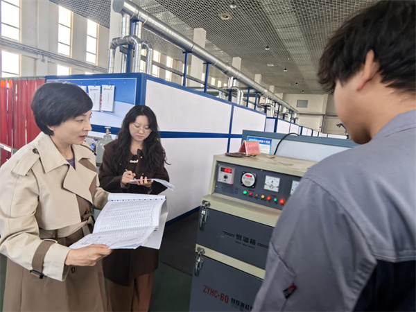余琴(左)和同事在某局預算執行審計項目中實地查看培訓現場