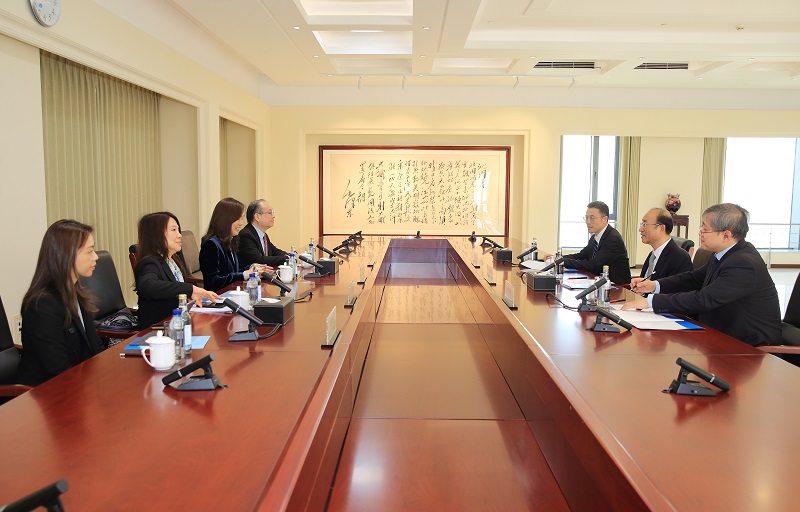 4月23日上午,審計署審計長侯凱在京會見澳門審計署審計長歐陽瑜率領的代表團一行。副審計長王本強同代表團成員開展了業務交流。