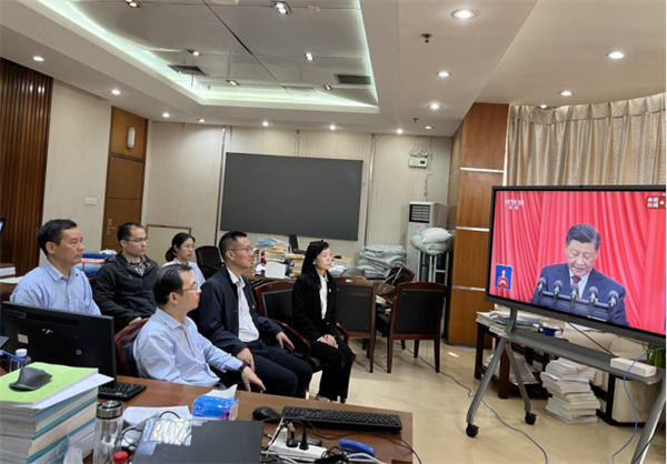 武漢市審計局組織局領導班子成員、一級調研員和各處室負責人集中收聽收看黨的二十大開幕會現場直播。