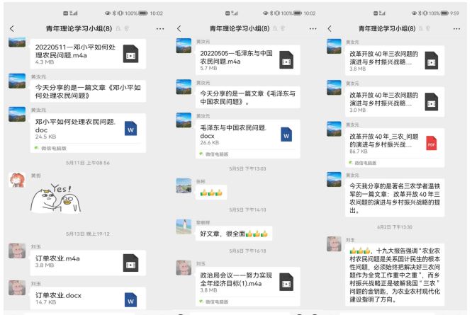 審計署廣州特派辦農業處黨支部現有干部9名,40歲以下的青年干部有7名。由于長期異地審計多,不易開展支部集體學習活動,該辦農業處黨支部今年創新組織模式,依托青年理論學習小組,通過微信群打造“每日一讀”學習平臺。青年干部結合審計項目和個人學習計劃,摘選黨中央、國務院重大決策部署和政策措施、時事政治、“三農”知識科普等內容,通過微信群每日推送集語音、文字于一體的“微學習”資料,推動黨建與業務有效融合,助力干部快速成長。