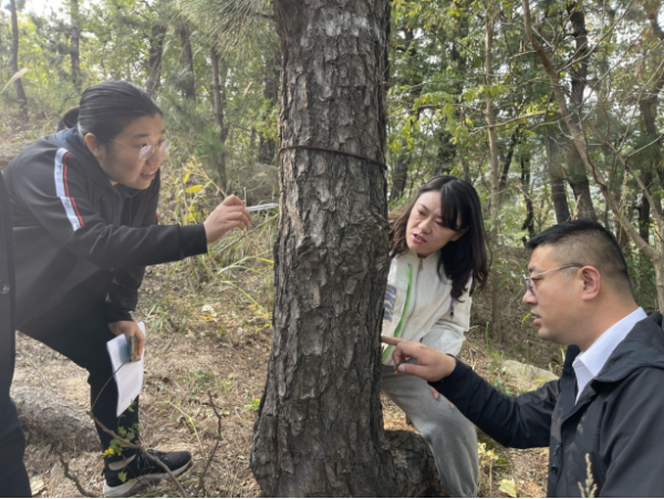 今年,山東省青島市嶗山區審計局開展了松材線蟲病防治的專項審計調查工作。本著研究透徹、著眼于長遠的原則,項目結束后,審計人員對“嶗山松”始終保持高度關注,在防治方案的修改完善、飛機施藥區域選取、助干劑補打等后續事項的開展過程中,多次主動與嶗山區自然資源局共同探討、研究,提出建設性建議,為保障嶗山生態安全、守護綠水青山貢獻審計力量。圖為11月初審計人員現場查看助干劑補打。(周萌萌)