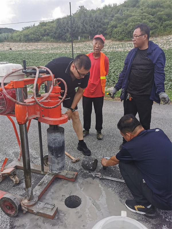 省審計廳電子數據審計處在縣級黨委、政府領導干部經濟責任審計中,關注農村“一事一議”公路建設情況,現場測量路面墊層厚度和施工質量,助力打造群眾出行“放心滿意路”。