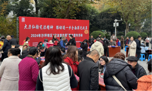 榮昌區審計局在區人民廣場開展憲法宣傳活動,向居民發放法律宣傳手冊,并現場為群眾講解社會保障、退休養老、教育醫療等民生政策,引導群眾增強法治思維,學會運用法律依法維護合法權益。