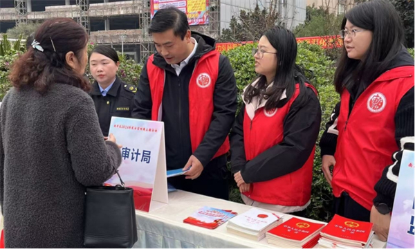 開州區審計局深入社區街道,通過設置宣傳展板、懸掛橫幅標語、發放宣傳手提袋和宣傳手冊等形式,向群眾普及憲法、民法典等與群眾生產生活密切相關的法律知識,推動法治宣傳入腦入心。