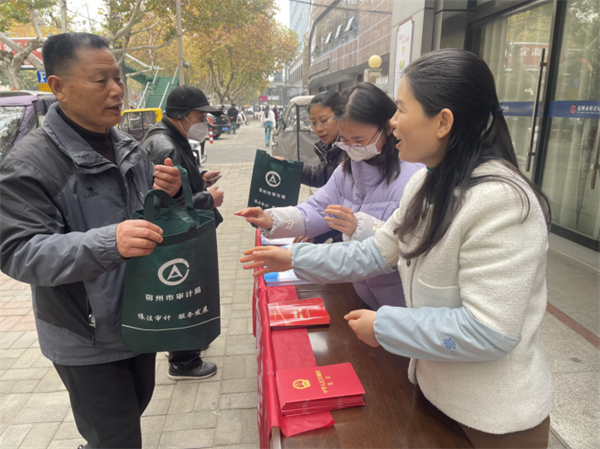 宿州市審計局開展現場普法宣傳教育。工作人員向市民介紹憲法、審計法的相關知識,解答大家關心的問題,增強廣大市民辦事依法、遇事找法、解決問題用法、化解矛盾靠法的意識。