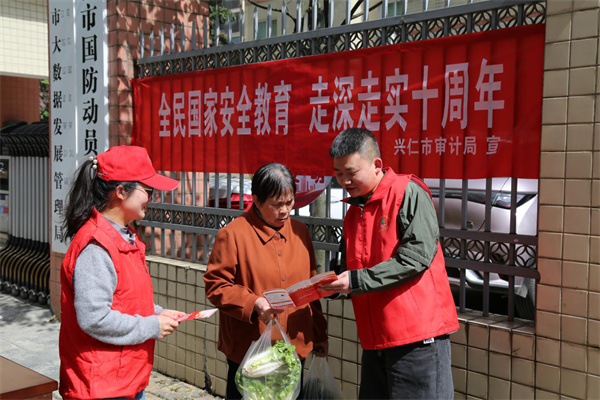 黔西南州興仁市審計局通過懸掛主題橫幅、設置宣傳咨詢臺、發放《國家安全知識手冊》等形式,向群眾宣傳普及國家安全知識;制作宣傳展板,組織安全隱患排查,對辦公用計算機、移動存儲介質、涉密資料進行保密檢查,及時發現并消除各類安全風險隱患,積極宣傳國家安全知識,營造濃厚的國家安全教育氛圍。