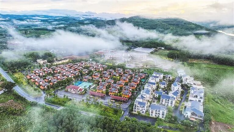 冬日的暖陽輕柔地灑在海南省白沙黎族自治縣的山嶺間,遠處層巒疊翠,近處田疇井然。新高峰村白墻黛瓦的59棟院落靜靜佇立,溫馨空間藏著117戶家庭的日常。裝配式建筑的利落線條里,是管道燃氣的煙火氣,太陽能路燈的暖光,則為歸家路披上溫柔的濾鏡。黨群服務中心融聚便民、文化與治理功能,船型屋文化長廊訴說鄉愁,籃球場的躍動、健身區的活力、口袋公園的綠意,更讓日子有了鮮活注腳。